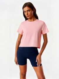 This women’s T-shirt is made from cool-touch polyamide fabric, providing lightweight comfort and breathability. Its relaxed fit and simple design make it a versatile choice for daily wear in multiple colors.