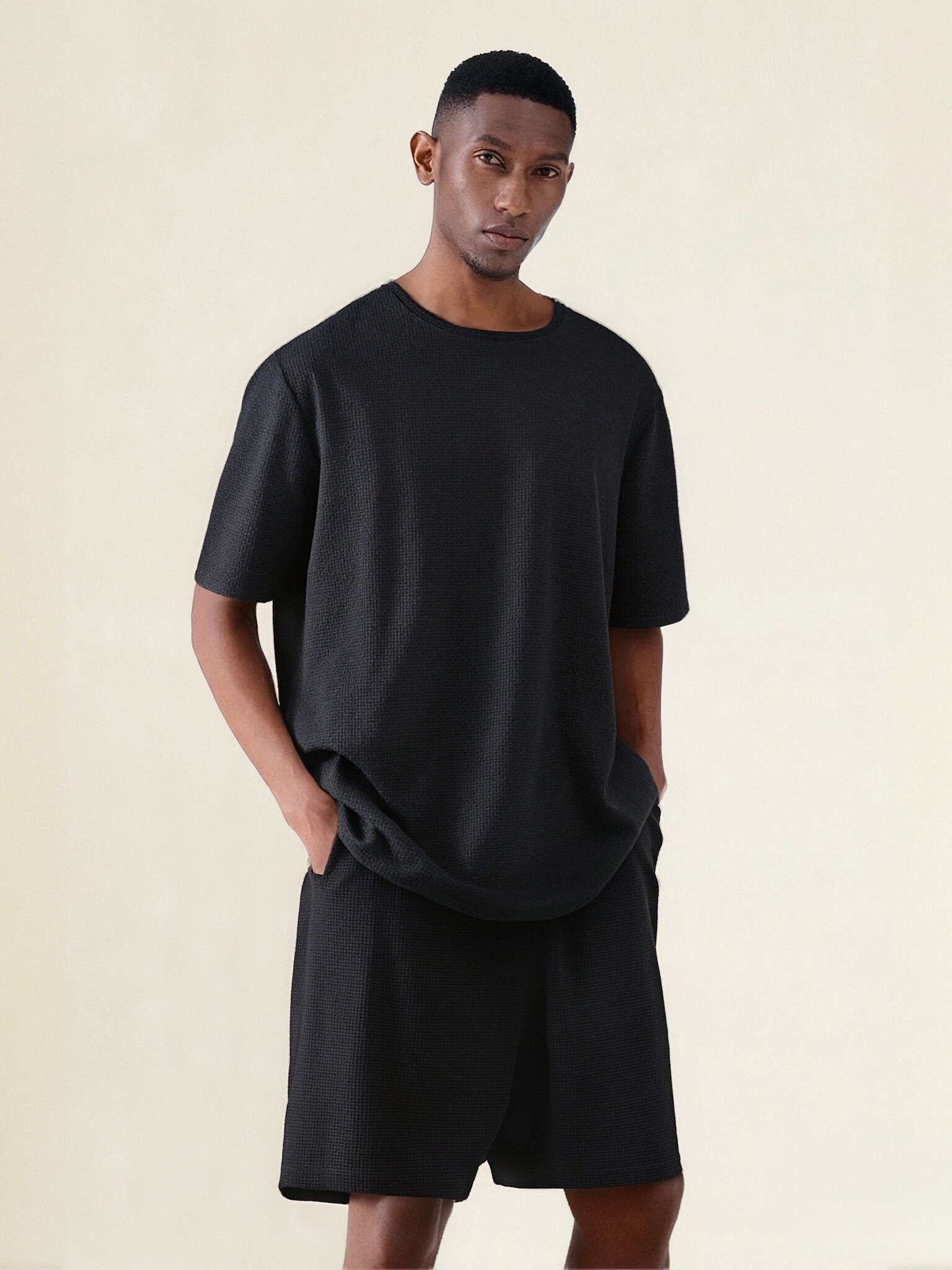 首页 男装 套装 男士提花T恤和短裤套装 B3001036
